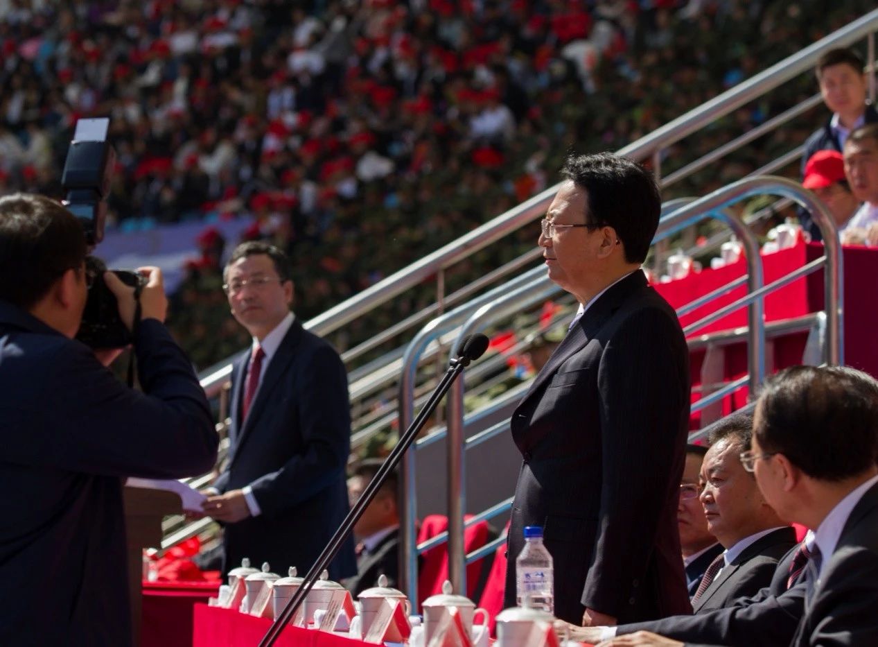 活動當(dāng)日,長春奧林匹克公園體育場座無虛席,上萬名觀眾云集于此,共同見證這一體育盛事。伴隨著嘹亮的音樂,鮮艷的五星紅旗引領(lǐng)吉林省第十八屆運動會會旗和吉林省第十八屆運動會會徽旗進入會場。